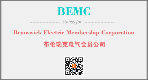 上述内容是“Brunswick Electric Membership Corporation”作为“BEMC”的缩写,解释为“布伦瑞克电气会员公司”时的信息,以及英文缩略词BEMC所代表的英文单词,其对应的中文拼音、详细解释以及在英文中的流行度和相关分类、应用领域及应用示例等。