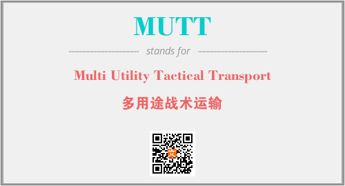 英文缩略词“MUTT”经常作为“Multi Utility Tactical Transport”的英文缩写来使用,中文表示:“多用途战术运输”。本文将详细介绍英文缩写词MUTT所代表英文单词,其对应的中文拼音、详细解释以及在英语中的流行度。此外,还有关于缩略词MUTT的分类、应用领域及相关应用示例等。