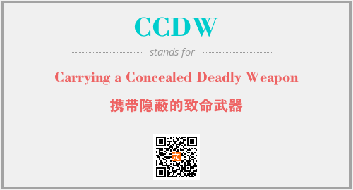 英文缩略词“CCDW”经常作为“Carrying a Concealed Deadly Weapon”的英文缩写来使用,中文表示:“携带隐蔽的致命武器”。本文将详细介绍英文缩写词CCDW所代表英文单词,其对应的中文拼音、详细解释以及在英语中的流行度。此外,还有关于缩略词CCDW的分类、应用领域及相关应用示例等。