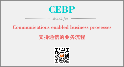 英文缩略词“CEBP”经常作为“Communications enabled business processes”的英文缩写来使用,中文表示:“支持通信的业务流程”。本文将详细介绍英文缩写词CEBP所代表英文单词,其对应的中文拼音、详细解释以及在英语中的流行度。此外,还有关于缩略词CEBP的分类、应用领域及相关应用示例等。