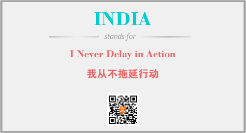 以上为I Never Delay in Action英文缩略词INDIA的中文解释,以及该英文缩写在英语的流行度、分类和应用领域方面的信息。