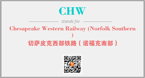上述内容是“Chesapeake Western Railway (Norfolk Southern)”作为“CHW”的缩写,解释为“切萨皮克西部铁路(诺福克南部)”时的信息,以及英文缩略词CHW所代表的英文单词,其对应的中文拼音、详细解释以及在英文中的流行度和相关分类、应用领域及应用示例等。