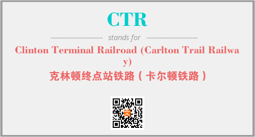 上述内容是“Clinton Terminal Railroad (Carlton Trail Railway)”作为“CTR”的缩写,解释为“克林顿终点站铁路(卡尔顿铁路)”时的信息,以及英文缩略词CTR所代表的英文单词,其对应的中文拼音、详细解释以及在英文中的流行度和相关分类、应用领域及应用示例等。