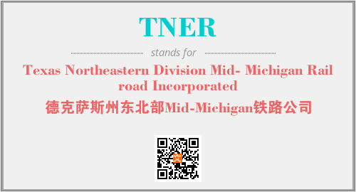 上述内容是“Texas Northeastern Division Mid- Michigan Railroad Incorporated”作为“TNER”的缩写,解释为“德克萨斯州东北部Mid-Michigan铁路公司”时的信息,以及英文缩略词TNER所代表的英文单词,其对应的中文拼音、详细解释以及在英文中的流行度和相关分类、应用领域及应用示例等。