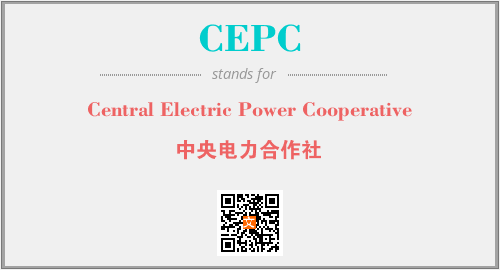 英文缩略词“CEPC”经常作为“Central Electric Power Cooperative”的英文缩写来使用,中文表示:“中央电力合作社”。本文将详细介绍英文缩写词CEPC所代表英文单词,其对应的中文拼音、详细解释以及在英语中的流行度。此外,还有关于缩略词CEPC的分类、应用领域及相关应用示例等。