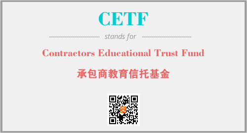 上述内容是“Contractors Educational Trust Fund”作为“CETF”的缩写,解释为“承包商教育信托基金”时的信息,以及英文缩略词CETF所代表的英文单词,其对应的中文拼音、详细解释以及在英文中的流行度和相关分类、应用领域及应用示例等。