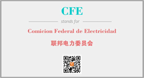 英文缩略词“CFE”经常作为“Comicion Federal de Electricidad”的英文缩写来使用,中文表示:“联邦电力委员会”。本文将详细介绍英文缩写词CFE所代表英文单词,其对应的中文拼音、详细解释以及在英语中的流行度。此外,还有关于缩略词CFE的分类、应用领域及相关应用示例等。