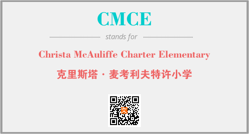 上述内容是“Christa McAuliffe Charter Elementary”作为“CMCE”的缩写,解释为“克里斯塔·麦考利夫特许小学”时的信息,以及英文缩略词CMCE所代表的英文单词,其对应的中文拼音、详细解释以及在英文中的流行度和相关分类、应用领域及应用示例等。