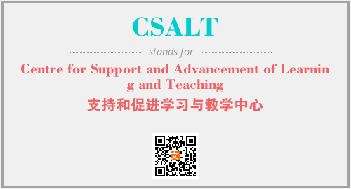 上述内容是“Centre for Support and Advancement of Learning and Teaching”作为“CSALT”的缩写,解释为“支持和促进学习与教学中心”时的信息,以及英文缩略词CSALT所代表的英文单词,其对应的中文拼音、详细解释以及在英文中的流行度和相关分类、应用领域及应用示例等。
