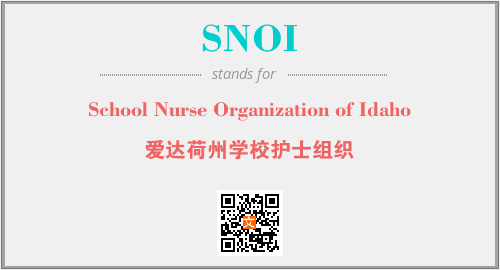 上述内容是“School Nurse Organization of Idaho”作为“SNOI”的缩写,解释为“爱达荷州学校护士组织”时的信息,以及英文缩略词SNOI所代表的英文单词,其对应的中文拼音、详细解释以及在英文中的流行度和相关分类、应用领域及应用示例等。