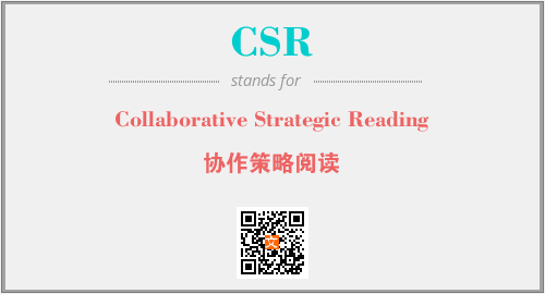 上述内容是“Collaborative Strategic Reading”作为“CSR”的缩写,解释为“协作策略阅读”时的信息,以及英文缩略词CSR所代表的英文单词,其对应的中文拼音、详细解释以及在英文中的流行度和相关分类、应用领域及应用示例等。