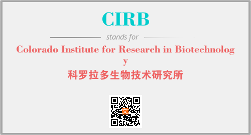 以上为Colorado Institute for Research in Biotechnology英文缩略词CIRB的中文解释,以及该英文缩写在英语的流行度、分类和应用领域方面的信息。