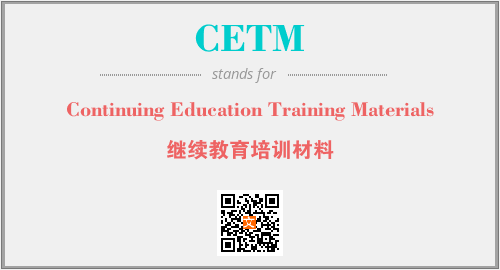 英文缩略词“CETM”经常作为“Continuing Education Training Materials”的英文缩写来使用,中文表示:“继续教育培训材料”。本文将详细介绍英文缩写词CETM所代表英文单词,其对应的中文拼音、详细解释以及在英语中的流行度。此外,还有关于缩略词CETM的分类、应用领域及相关应用示例等。