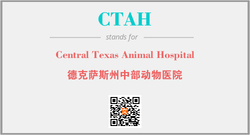 英文缩略词“CTAH”经常作为“Central Texas Animal Hospital”的英文缩写来使用,中文表示:“德克萨斯州中部动物医院”。本文将详细介绍英文缩写词CTAH所代表英文单词,其对应的中文拼音、详细解释以及在英语中的流行度。此外,还有关于缩略词CTAH的分类、应用领域及相关应用示例等。