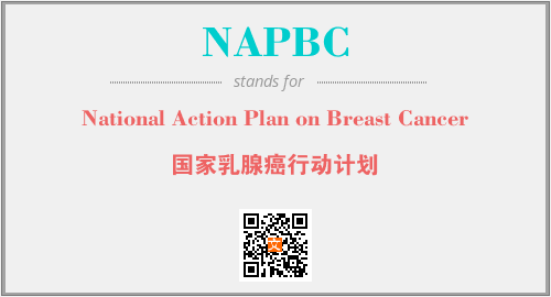上述内容是“National Action Plan on Breast Cancer”作为“NAPBC”的缩写,解释为“国家乳腺癌行动计划”时的信息,以及英文缩略词NAPBC所代表的英文单词,其对应的中文拼音、详细解释以及在英文中的流行度和相关分类、应用领域及应用示例等。