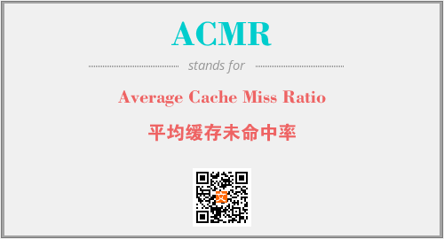 英文缩略词“ACMR”经常作为“Average Cache Miss Ratio”的英文缩写来使用,中文表示:“平均缓存未命中率”。本文将详细介绍英文缩写词ACMR所代表英文单词,其对应的中文拼音、详细解释以及在英语中的流行度。此外,还有关于缩略词ACMR的分类、应用领域及相关应用示例等。