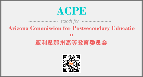 上述内容是“Arizona Commission for Postsecondary Education”作为“ACPE”的缩写,解释为“亚利桑那州高等教育委员会”时的信息,以及英文缩略词ACPE所代表的英文单词,其对应的中文拼音、详细解释以及在英文中的流行度和相关分类、应用领域及应用示例等。