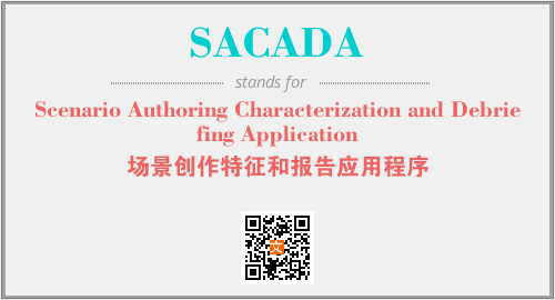 上述内容是“Scenario Authoring Characterization and Debriefing Application”作为“SACADA”的缩写,解释为“场景创作特征和报告应用程序”时的信息,以及英文缩略词SACADA所代表的英文单词,其对应的中文拼音、详细解释以及在英文中的流行度和相关分类、应用领域及应用示例等。