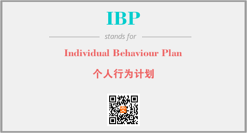 英文缩略词“IBP”经常作为“Individual Behaviour Plan”的英文缩写来使用,中文表示:“个人行为计划”。本文将详细介绍英文缩写词IBP所代表英文单词,其对应的中文拼音、详细解释以及在英语中的流行度。此外,还有关于缩略词IBP的分类、应用领域及相关应用示例等。