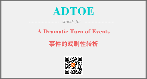 以上为A Dramatic Turn of Events英文缩略词ADTOE的中文解释,以及该英文缩写在英语的流行度、分类和应用领域方面的信息。