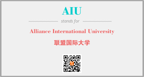 以上为Alliance International University英文缩略词AIU的中文解释,以及该英文缩写在英语的流行度、分类和应用领域方面的信息。