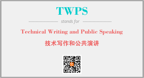 上述内容是“Technical Writing and Public Speaking”作为“TWPS”的缩写,解释为“技术写作和公共演讲”时的信息,以及英文缩略词TWPS所代表的英文单词,其对应的中文拼音、详细解释以及在英文中的流行度和相关分类、应用领域及应用示例等。