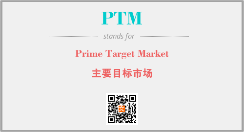上述内容是“Prime Target Market”作为“PTM”的缩写,解释为“主要目标市场”时的信息,以及英文缩略词PTM所代表的英文单词,其对应的中文拼音、详细解释以及在英文中的流行度和相关分类、应用领域及应用示例等。