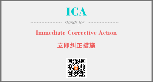 英文缩略词“ICA”经常作为“Immediate Corrective Action”的英文缩写来使用,中文表示:“立即纠正措施”。本文将详细介绍英文缩写词ICA所代表英文单词,其对应的中文拼音、详细解释以及在英语中的流行度。此外,还有关于缩略词ICA的分类、应用领域及相关应用示例等。