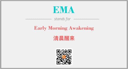 上述内容是“Early Morning Awakening”作为“EMA”的缩写,解释为“清晨醒来”时的信息,以及英文缩略词EMA所代表的英文单词,其对应的中文拼音、详细解释以及在英文中的流行度和相关分类、应用领域及应用示例等。
