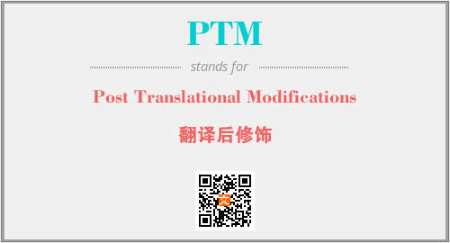 英文缩略词“PTM”经常作为“Post Translational Modifications”的英文缩写来使用,中文表示:“翻译后修饰”。本文将详细介绍英文缩写词PTM所代表英文单词,其对应的中文拼音、详细解释以及在英语中的流行度。此外,还有关于缩略词PTM的分类、应用领域及相关应用示例等。