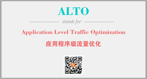 上述内容是“Application Level Traffic Optimization”作为“ALTO”的缩写,解释为“应用程序级流量优化”时的信息,以及英文缩略词ALTO所代表的英文单词,其对应的中文拼音、详细解释以及在英文中的流行度和相关分类、应用领域及应用示例等。