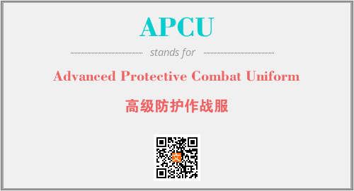 以上为Advanced Protective Combat Uniform英文缩略词APCU的中文解释,以及该英文缩写在英语的流行度、分类和应用领域方面的信息。