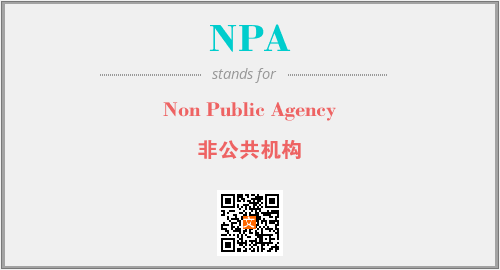 英文缩略词“NPA”经常作为“Non Public Agency”的英文缩写来使用,中文表示:“非公共机构”。本文将详细介绍英文缩写词NPA所代表英文单词,其对应的中文拼音、详细解释以及在英语中的流行度。此外,还有关于缩略词NPA的分类、应用领域及相关应用示例等。