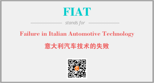 以上为Failure in Italian Automotive Technology英文缩略词FIAT的中文解释,以及该英文缩写在英语的流行度、分类和应用领域方面的信息。