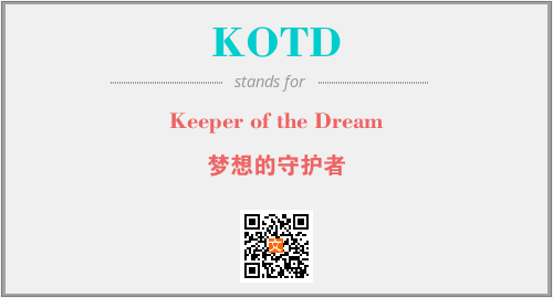 上述内容是“Keeper of the Dream”作为“KOTD”的缩写,解释为“梦想的守护者”时的信息,以及英文缩略词KOTD所代表的英文单词,其对应的中文拼音、详细解释以及在英文中的流行度和相关分类、应用领域及应用示例等。