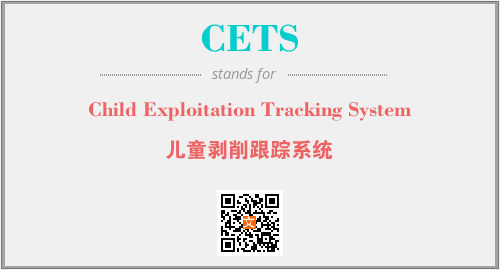 英文缩略词“CETS”经常作为“Child Exploitation Tracking System”的英文缩写来使用,中文表示:“儿童剥削跟踪系统”。本文将详细介绍英文缩写词CETS所代表英文单词,其对应的中文拼音、详细解释以及在英语中的流行度。此外,还有关于缩略词CETS的分类、应用领域及相关应用示例等。