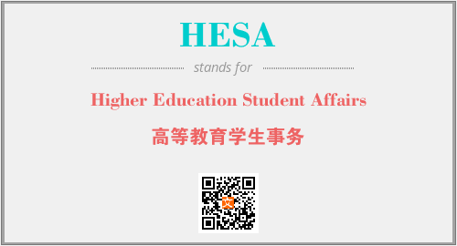 上述内容是“Higher Education Student Affairs”作为“HESA”的缩写,解释为“高等教育学生事务”时的信息,以及英文缩略词HESA所代表的英文单词,其对应的中文拼音、详细解释以及在英文中的流行度和相关分类、应用领域及应用示例等。