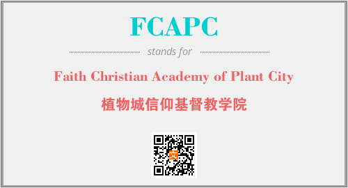 以上为Faith Christian Academy of Plant City英文缩略词FCAPC的中文解释,以及该英文缩写在英语的流行度、分类和应用领域方面的信息。