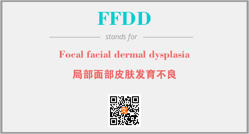 上述内容是“Focal facial dermal dysplasia”作为“FFDD”的缩写,解释为“局部面部皮肤发育不良”时的信息,以及英文缩略词FFDD所代表的英文单词,其对应的中文拼音、详细解释以及在英文中的流行度和相关分类、应用领域及应用示例等。
