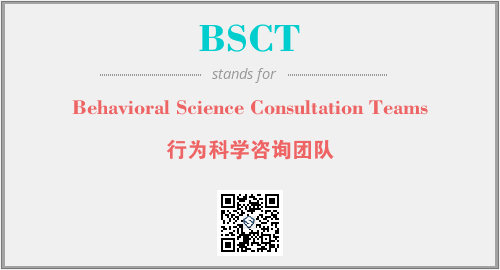 以上为Behavioral Science Consultation Teams英文缩略词BSCT的中文解释,以及该英文缩写在英语的流行度、分类和应用领域方面的信息。