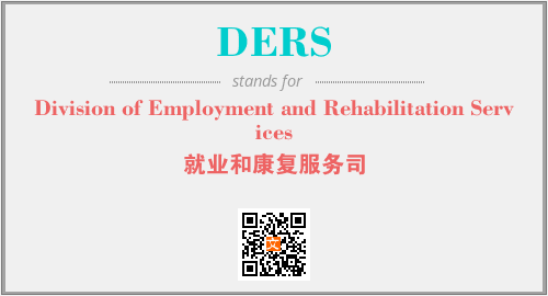上述内容是“Division of Employment and Rehabilitation Services”作为“DERS”的缩写,解释为“就业和康复服务司”时的信息,以及英文缩略词DERS所代表的英文单词,其对应的中文拼音、详细解释以及在英文中的流行度和相关分类、应用领域及应用示例等。