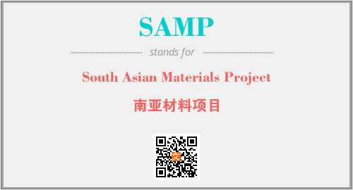 英文缩略词“SAMP”经常作为“South Asian Materials Project”的英文缩写来使用,中文表示:“南亚材料项目”。本文将详细介绍英文缩写词SAMP所代表英文单词,其对应的中文拼音、详细解释以及在英语中的流行度。此外,还有关于缩略词SAMP的分类、应用领域及相关应用示例等。