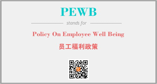 上述内容是“Policy On Employee Well Being”作为“PEWB”的缩写,解释为“员工福利政策”时的信息,以及英文缩略词PEWB所代表的英文单词,其对应的中文拼音、详细解释以及在英文中的流行度和相关分类、应用领域及应用示例等。