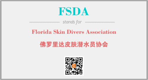 英文缩略词“FSDA”经常作为“Florida Skin Divers Association”的英文缩写来使用,中文表示:“佛罗里达皮肤潜水员协会”。本文将详细介绍英文缩写词FSDA所代表英文单词,其对应的中文拼音、详细解释以及在英语中的流行度。此外,还有关于缩略词FSDA的分类、应用领域及相关应用示例等。