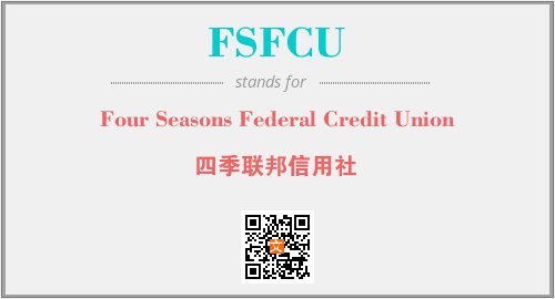 英文缩略词“FSFCU”经常作为“Four Seasons Federal Credit Union”的英文缩写来使用,中文表示:“四季联邦信用社”。本文将详细介绍英文缩写词FSFCU所代表英文单词,其对应的中文拼音、详细解释以及在英语中的流行度。此外,还有关于缩略词FSFCU的分类、应用领域及相关应用示例等。