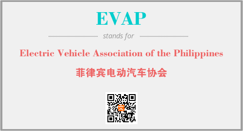 上述内容是“Electric Vehicle Association of the Philippines”作为“EVAP”的缩写,解释为“菲律宾电动汽车协会”时的信息,以及英文缩略词EVAP所代表的英文单词,其对应的中文拼音、详细解释以及在英文中的流行度和相关分类、应用领域及应用示例等。