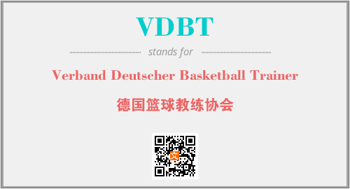 英文缩略词“VDBT”经常作为“Verband Deutscher Basketball Trainer”的英文缩写来使用,中文表示:“德国篮球教练协会”。本文将详细介绍英文缩写词VDBT所代表英文单词,其对应的中文拼音、详细解释以及在英语中的流行度。此外,还有关于缩略词VDBT的分类、应用领域及相关应用示例等。