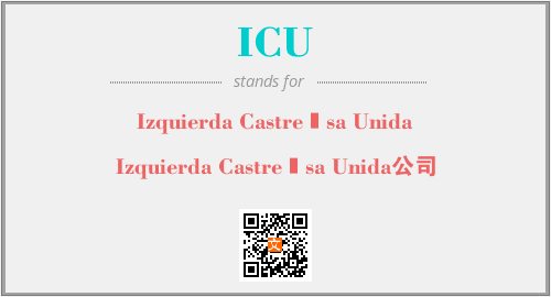 上述内容是“Izquierda Castreñsa Unida”作为“ICU”的缩写,解释为“Izquierda Castreñsa Unida公司”时的信息,以及英文缩略词ICU所代表的英文单词,其对应的中文拼音、详细解释以及在英文中的流行度和相关分类、应用领域及应用示例等。