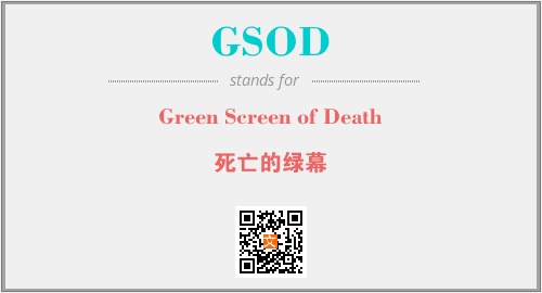 英文缩略词“GSOD”经常作为“Green Screen of Death”的英文缩写来使用,中文表示:“死亡的绿幕”。本文将详细介绍英文缩写词GSOD所代表英文单词,其对应的中文拼音、详细解释以及在英语中的流行度。此外,还有关于缩略词GSOD的分类、应用领域及相关应用示例等。