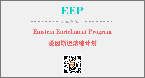 上述内容是“Einstein Enrichment Program”作为“EEP”的缩写,解释为“爱因斯坦浓缩计划”时的信息,以及英文缩略词EEP所代表的英文单词,其对应的中文拼音、详细解释以及在英文中的流行度和相关分类、应用领域及应用示例等。